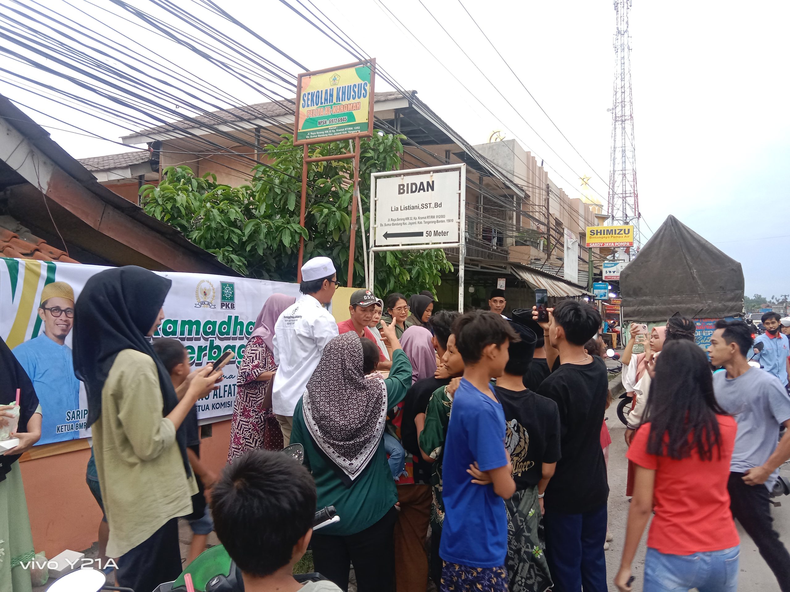 Hal ini di sambut baik dari kalangan tua muda serta anak – anak berantusias dalam antrian untuk mendapatkan takjil gratis dari Relawan Barisan Muda Rano Alfath, dengan menu es teh, es susu dan nasi box.