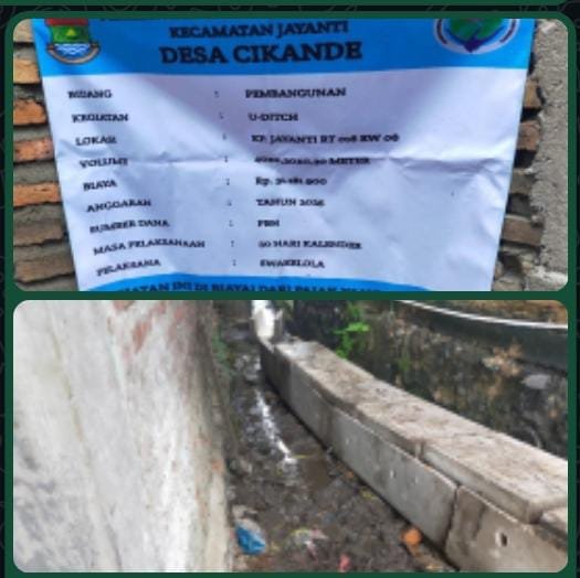 Kabupaten Tangerang | Antero.co – Proyek pembangunan saluran U-Ditch di Kampung Jayanti RT 016/RW 06, Desa Cikande, Kecamatan Jayanti, Kabupaten Tangerang, menuai sorotan warga dan awak media. Kegiatan yang bersumber dari anggaran tahun 2025 senilai Rp31.181.900 ini diduga dikerjakan secara asal-asalan dan tidak sesuai standar teknis. Kamis (13/11/25).