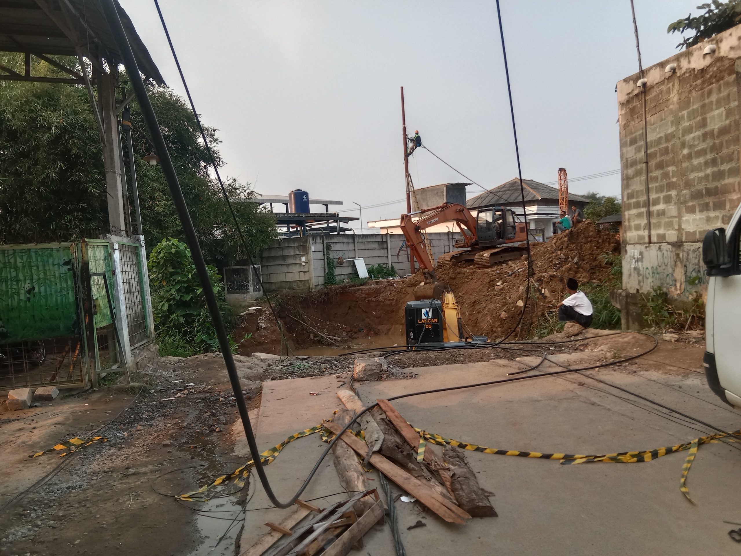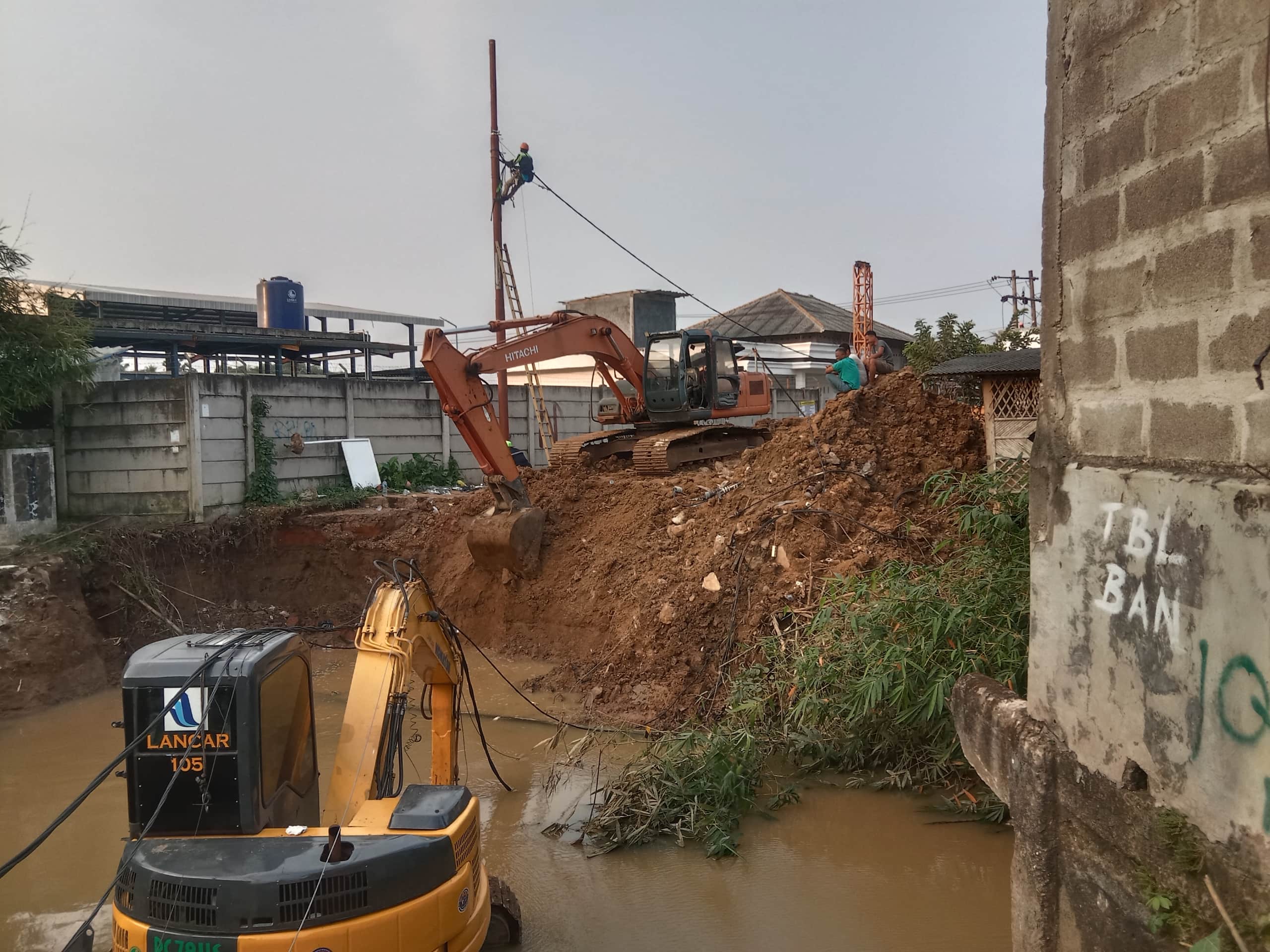Terpantau awak media saat melakukan investigasi lapangan, di lokasi proyek pembangunan jembatan tersebut ada tiang listrik roboh diakibatkan oleh kurang hati – hatinya oprator alat berat sehingga perlunya perbaikan tiang listrik oleh pihak PLN.