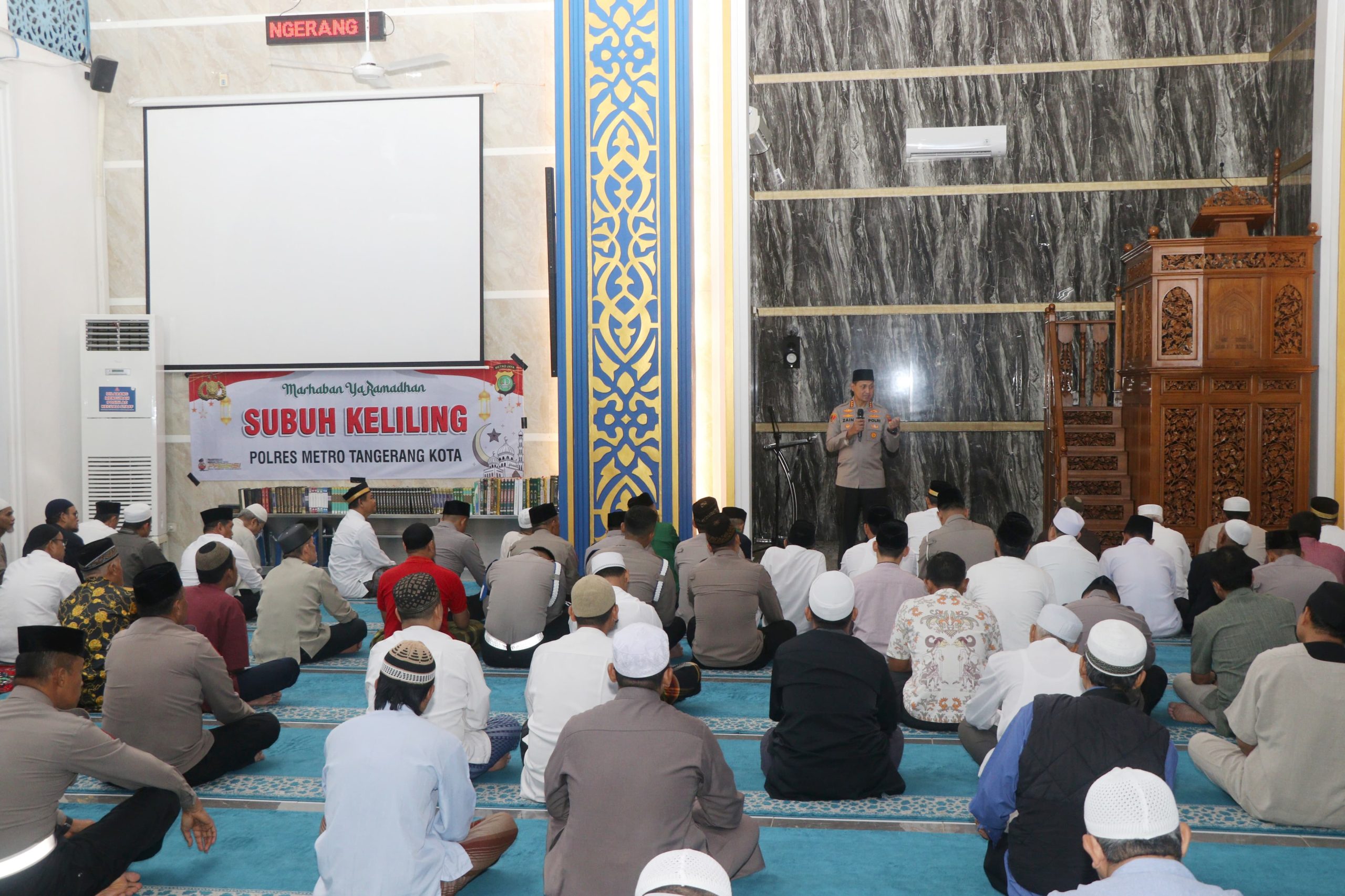 Kabupaten Tangerang | Antero.co – Kapolres Metro Tangerang Kota, Kombes Pol Zain Dwi Nugroho melaksanakan safari Ramadhan 1446 Hijriah/2025 Masehi melalui kegiatan Subuh Keliling (Suling) di Masjid Rahmatan Lil’Alamin di Perumahan Modern Land Jalan Taman Golf Boulevard Raya, Kelurahan Buaran Indah, Kecamatan Tangerang. Senin (10/3/2025).